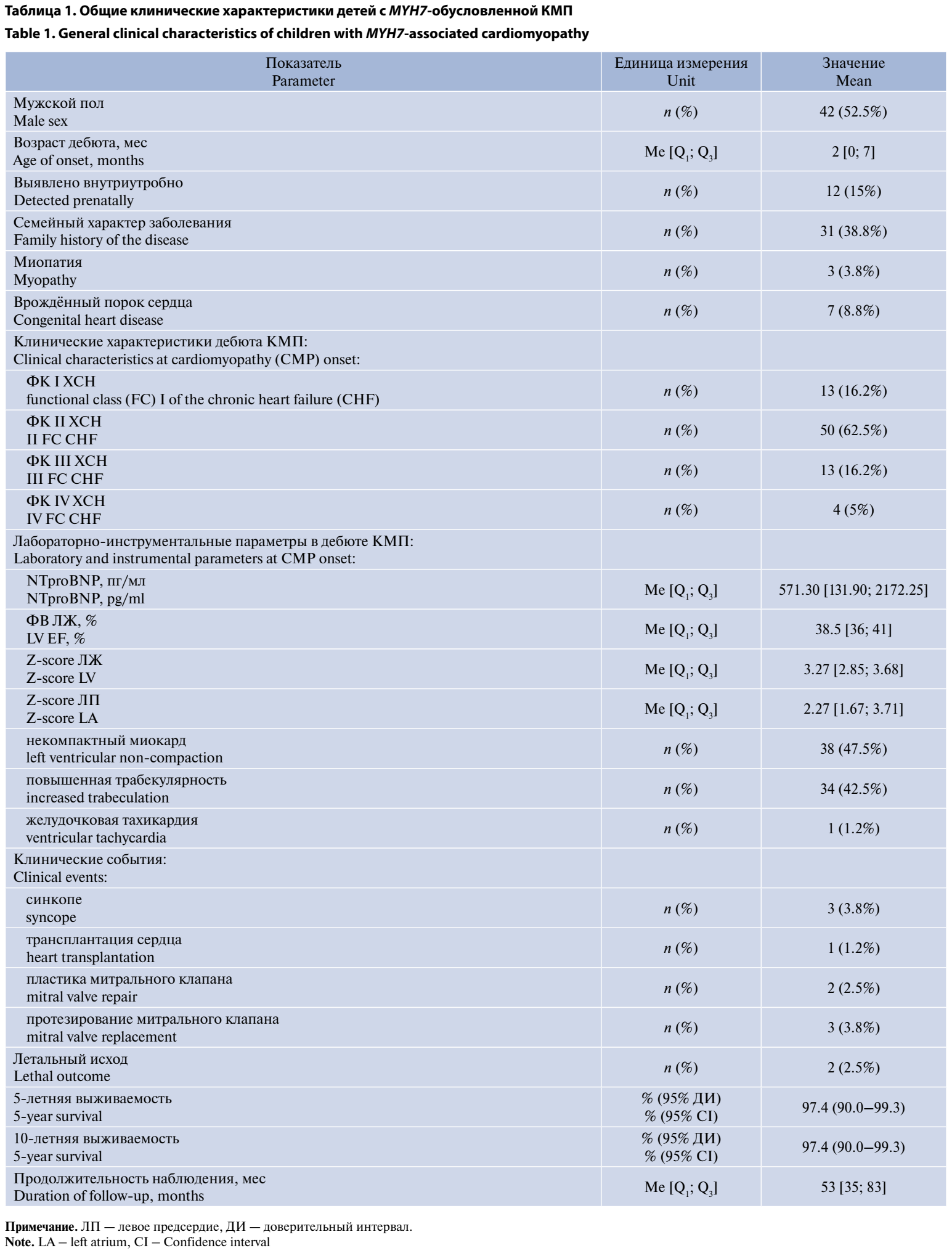 Цель работы — оценить клинические особенности течения заболевания MYH7-обусловленной КМП на большой выборке пациентов детского возраста.
